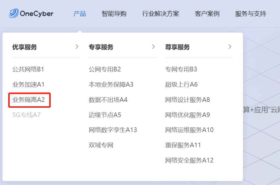2.在门户顶部导航栏产品选择优享服务目录的业务隔离A2。