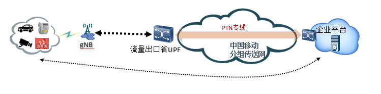 说明:移动UPF设备与客户平台布署在同一机房时,可光纤直连或客户平台直接加载在移动公司提供的边缘节点上,终端访问客户平台安全性最高,延时最低。 注:选择此模式,必须订购关联的其他产品,如:A4产品:数据不出场;A5产品:边缘节点。