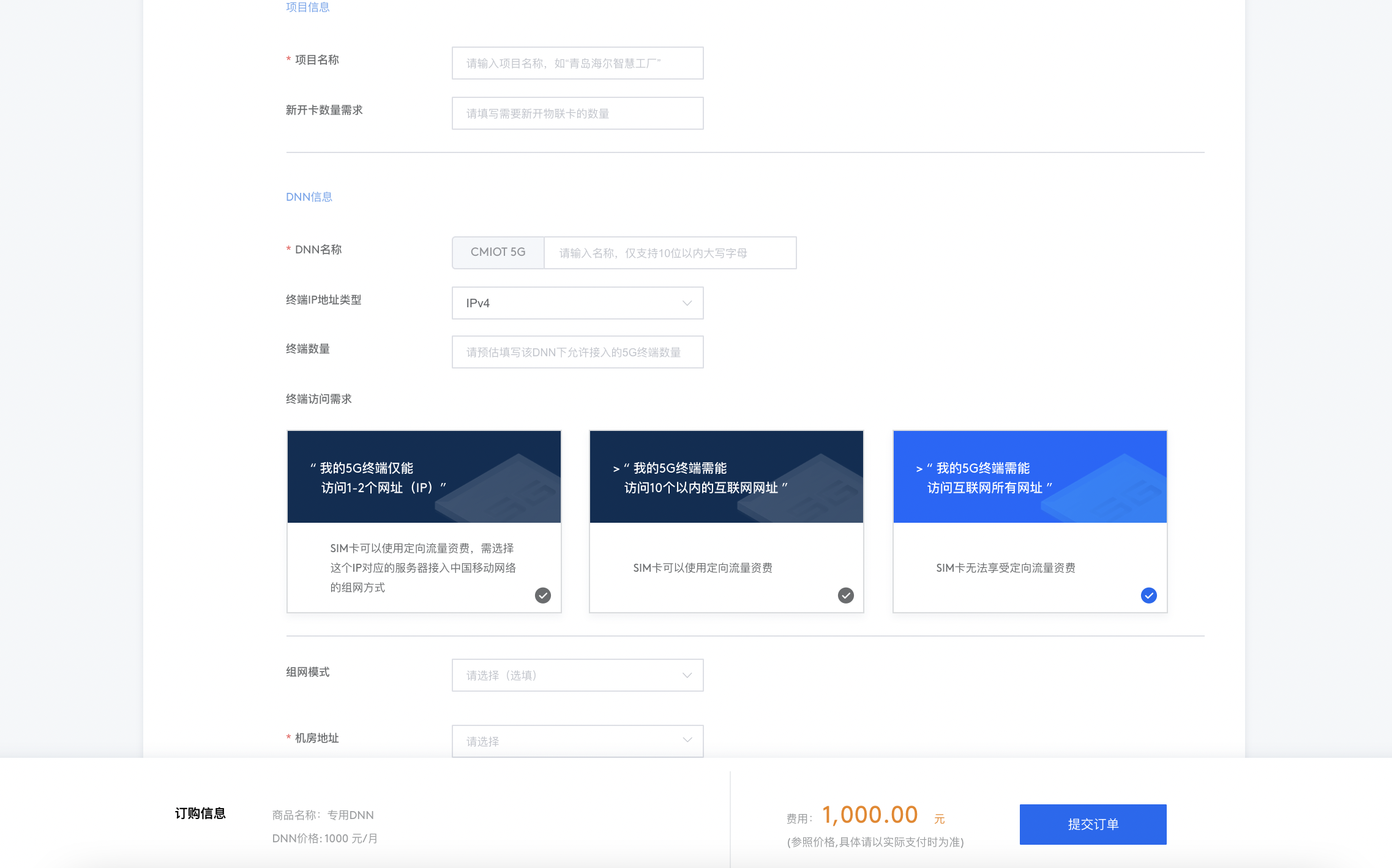 5.支持自定义DNN名称,选择终端IP地址类型,填写终端数量。