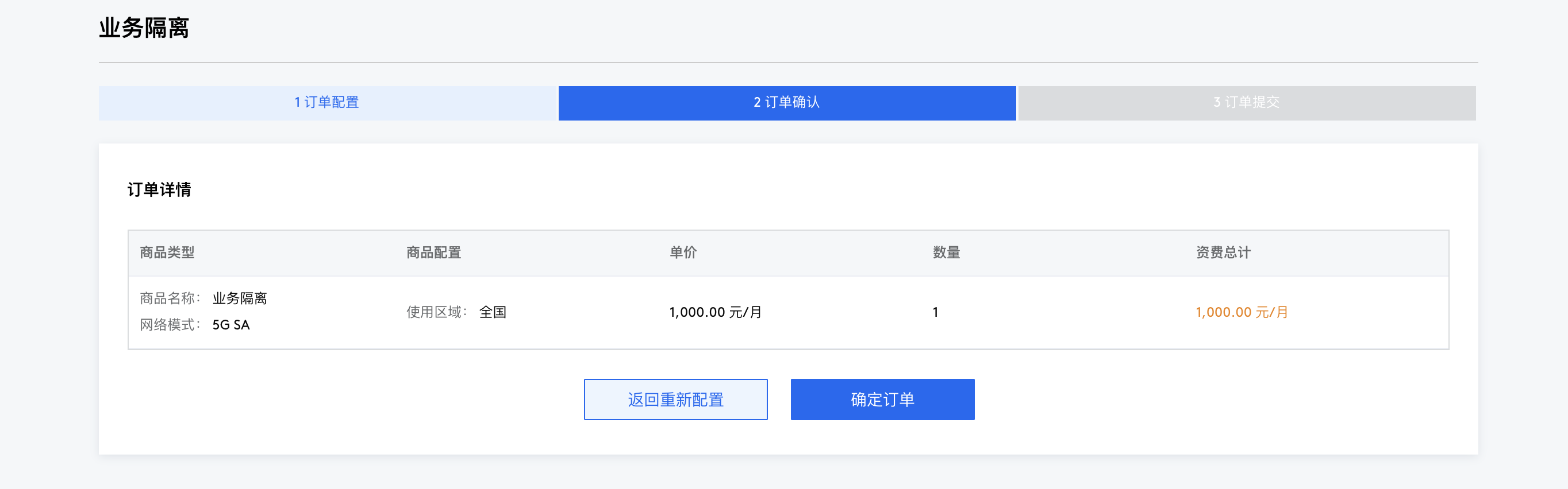| 提交成功 | 客户在5G专网平台进行订单确认后,即提交成功。相应订单会流转到客户经理处进行审核 |