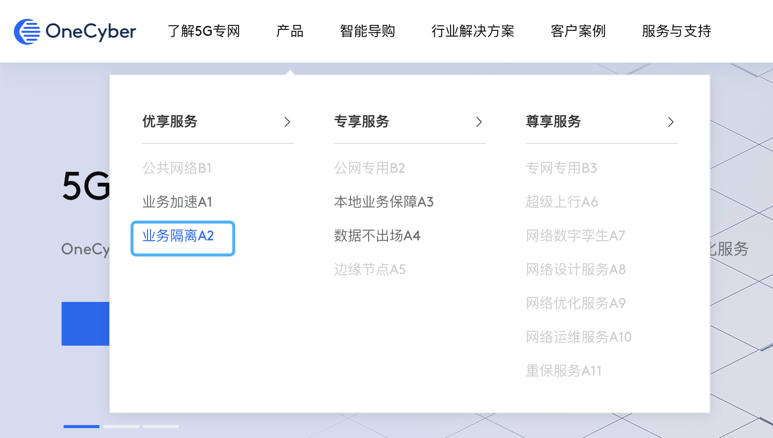2.在门户顶部导航栏产品选择优享服务目录的业务隔离A2。