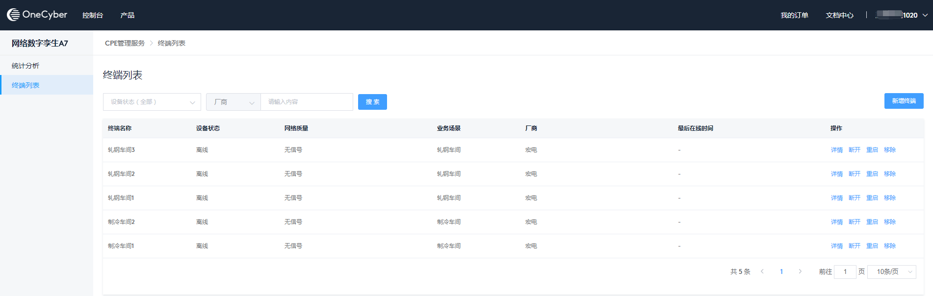 资源属于同一产品的,如卡、CPE等,点击资源名称则直接进入对应的产品控制台,如点击卡则进入物联卡管理控制台,点击CPE则进入网络数字孪生A7的产品控制台。