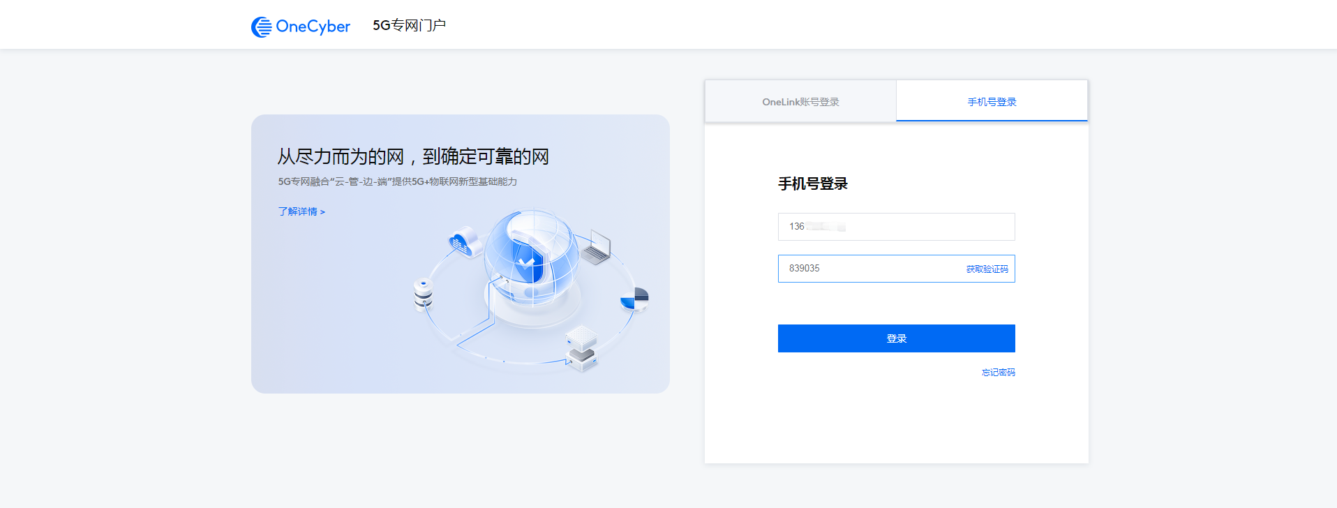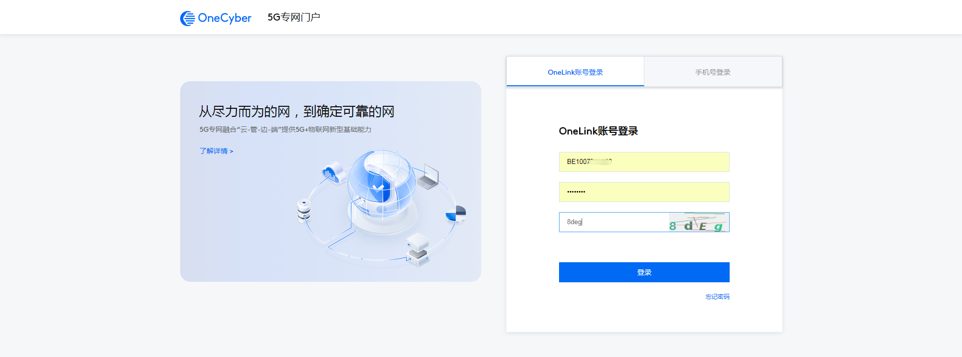 默认使用OneLink账号登录平台,填写账号、密码,点击获取验证码,即可完成登录。