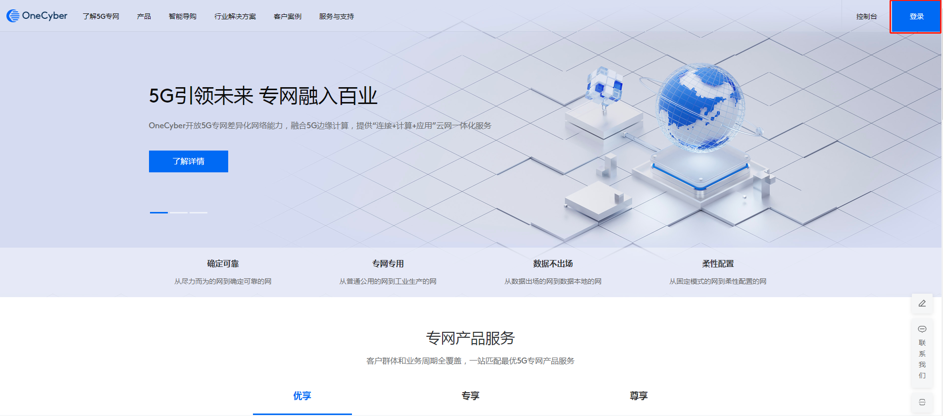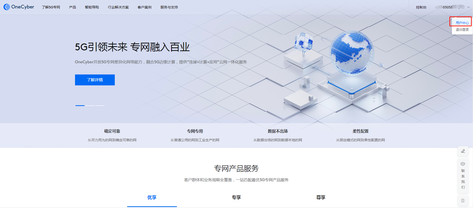 登录后,点击右上角“控制台”,进入OneCyber控制台,可查看已订购产品,使用相关服务。